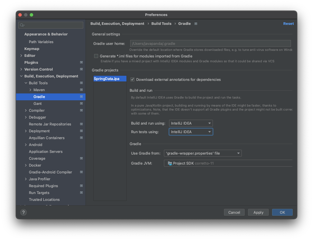 Build and run using과 Run tests using을 IntelliJ IDEA로 변경합니다!